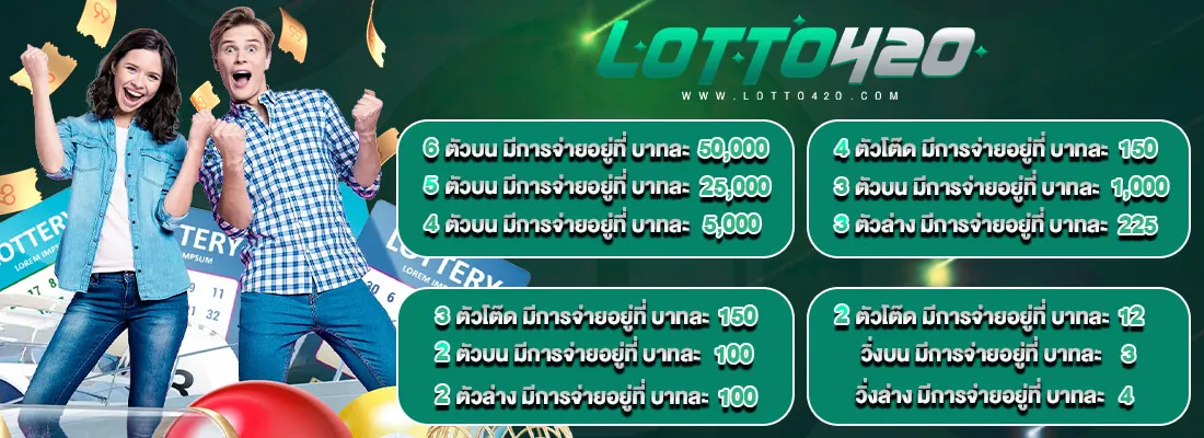 ล็อตโต้420 เว็บแทงหวยออนไลน์ที่เชื่อถือได้ มั่นคง ปลอดภัย และมีระบบการเงินที่มั่นคง โดยมีทีมงานมืออาชีพที่คอยให้บริการตลอด 24 ชั่วโมง เว็บหวย ออนไลน์ที่ดีที่สุดในไทย มาพร้อมกับอัตราการจ่ายที่สูงที่สุด โดยมีการให้ราคาการจ่ายเงิน ล็ อ ต โต้ 420 สล็อต อัตราการจ่าย หวยไทย หวยรัฐบาล ดีที่สุดในตอนนี้ โดยมีอัตราการจ่ายเงินดังต่อไปนี้ เว็บ ล็อตโต้วัน